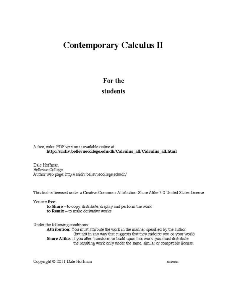 Contemporary Calculus Ii For The Students Pdf Summation Integral